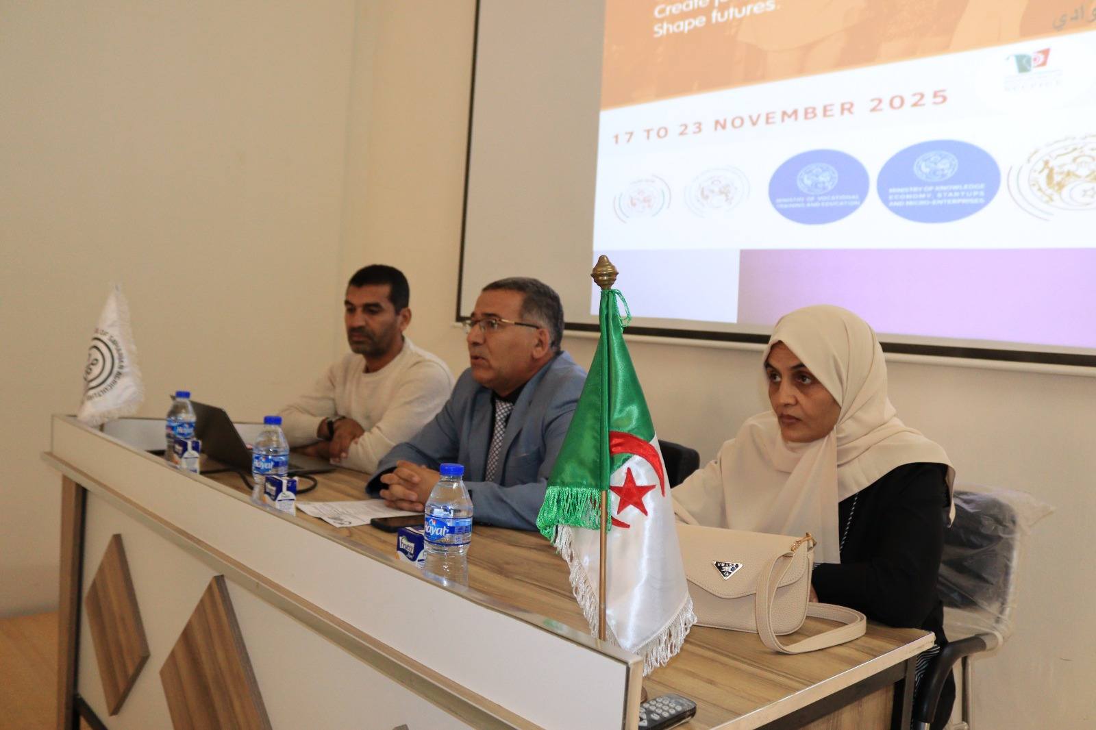انطلقت اليوم الاثنين 17 نوفمبر 2025 بالمدرسة العليا للفلاحة الصحراوية بالوادي فعاليات الأسبوع العالمي للمقاولاتية. الافتتاح كان بكلمة للسيد مدير المدرسة البروفيسور الحبيب قده الذي رحب بالضيوف و ركز في تدخله على اهمية الفكر المقاولاتي عند الطالب ، تلت كلمة السيد المدير كلمة السيد المدير المساعد للبحث العلمي الدكتور ابراهيم الخليل بحمان الذي اشار الى اهمية المقاولاتية كرافعة للاقتصاد الوطني خاصة في قطاع الفلاحة.