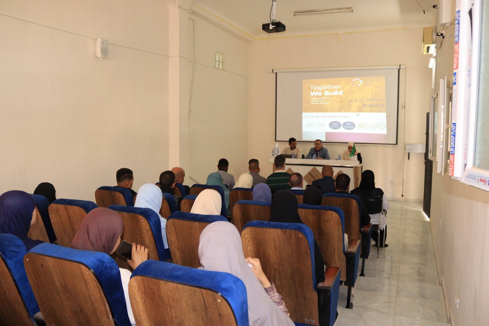 بعد الكلمات الترحيبية كان الدور للبروفيسور مفيد عبداللاوي الذي قدم عرض موسوم ب "دور المؤسسات الناشئة في التنمية المحلية"، و كذا الدكتورة وهيبة خزازنة التى قدمت عرض مرتبط بشعار الأسبوع العالمي للمقاولاتية و هو: "معا نبني" نظام مقاولاتي مكتمل.
