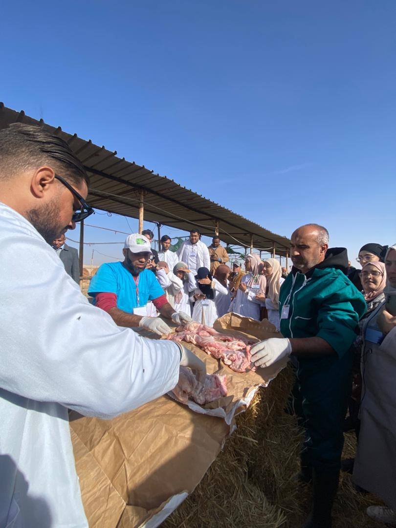 الفترة المسائية من الورشة التكوينية خصصها منسق الورشة الدكتور ٱحمد مناعي و هو استاذ بالمدرسة العليا للفلاحة الصحراوية بالوادي للتدريب العملي على التلقيح الاصطناعي و اكتشاف الشبق لدى الابقار الحلوب في مزرعة خاصة بالوادي.