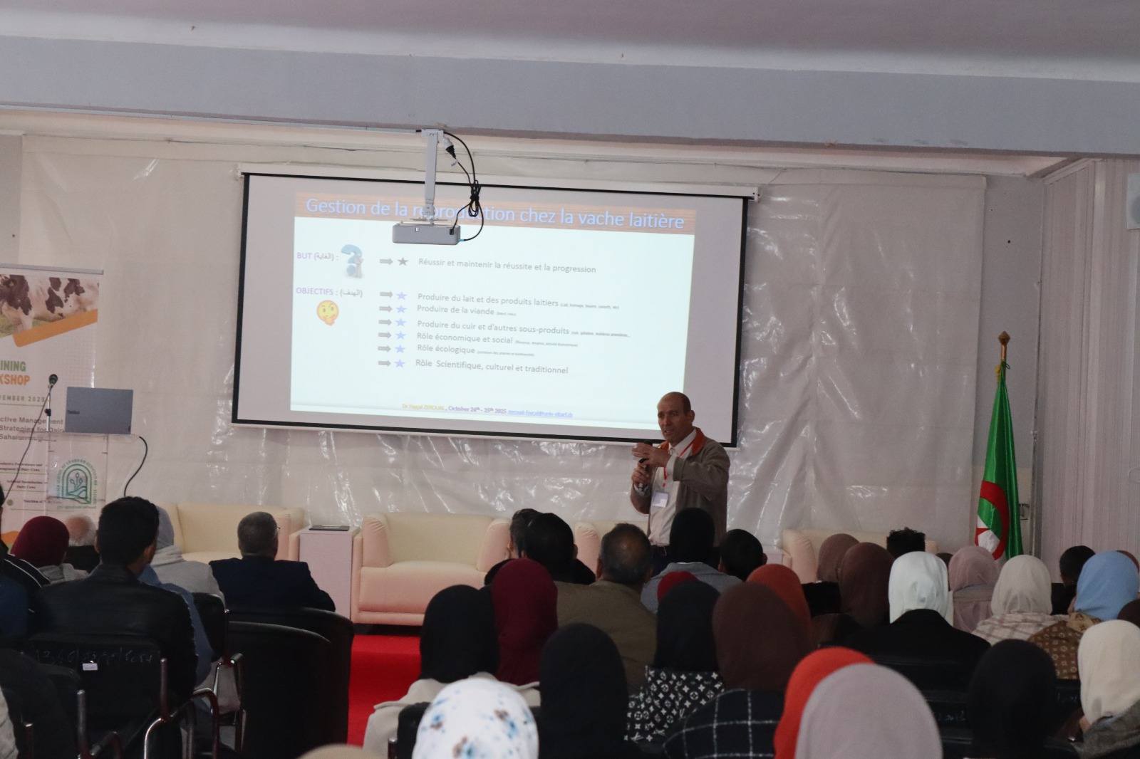 انطلقت اليوم الاثنين 24 نوفمبر 2025 بالمدرسة العليا للفلاحة الصحراوية بالوادي ورشة تكوينية بعنوان ادارة التكاثر واساليب التغذية للابقار الحلوب في المناطق الصحراوية.