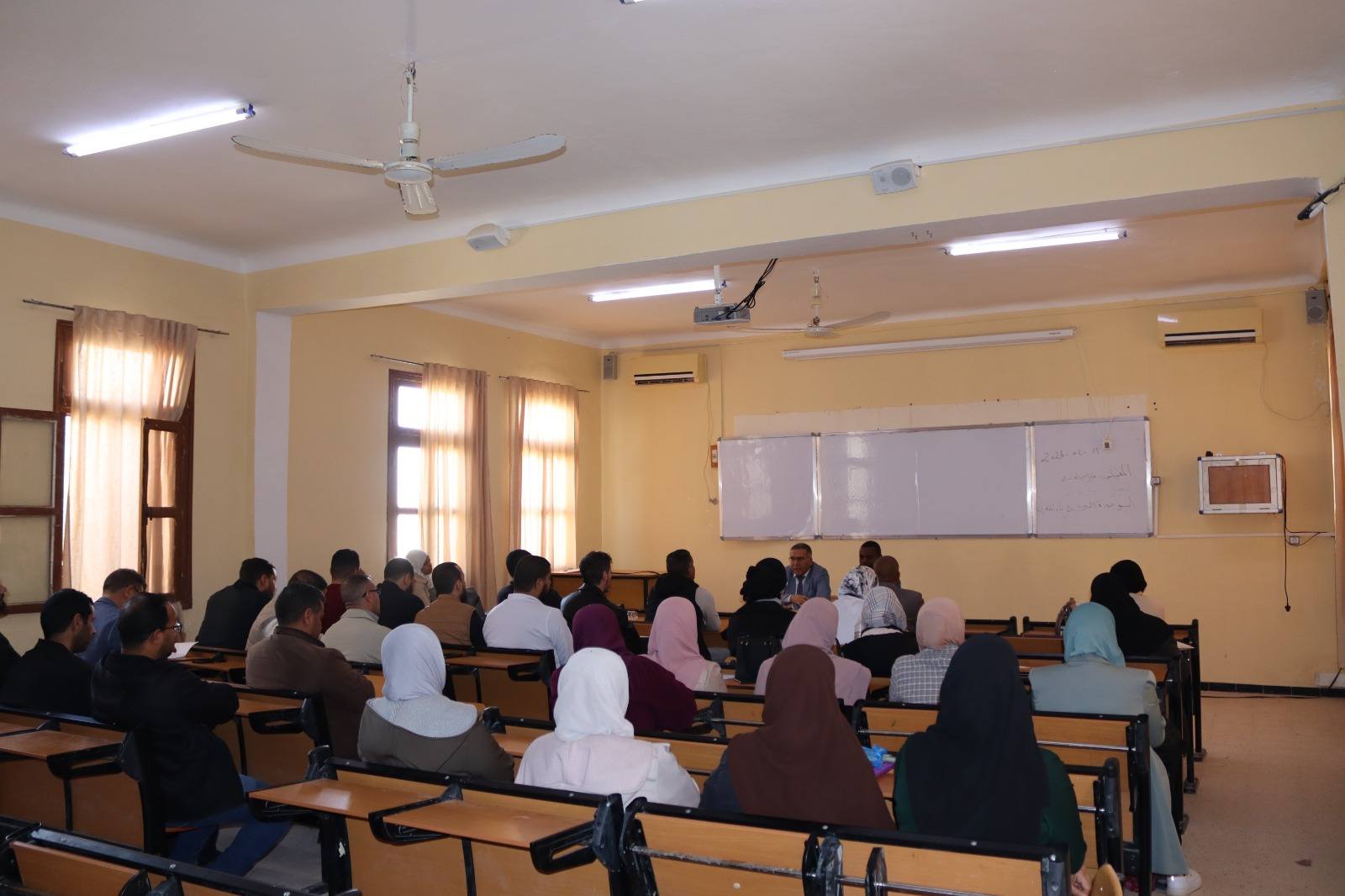 On Tuesday evening, February 17, 2026, the Higher School of Saharan Agriculture in El Oued held the first extended pedagogical meeting of the second semester, under the supervision of the Assistant Director for Pedagogy, Professor Sofiane SAGGAI, and the Head of the Second Cycle Department, Dr. Hafsa BENRAS. The meeting provided an opportunity to assess the first semester through the review of various concerns raised by stakeholders, particularly those communicated by student representatives, and to work towards addressing them while ensuring effective planning for the second semester. The School Director, Professor Habib GUEDDA, also addressed the meeting, issuing directives to teaching staff to further enhance their efforts in ensuring the success of the institution’s pedagogical mission through the promotion of a culture of discipline and commitment. He further highlighted key priorities aimed at strengthening the school’s standing, notably the implementation of the quality assurance system as well as the final-year graduation projects within the framework of Ministerial Decrees 1275 and 008 (as amended).