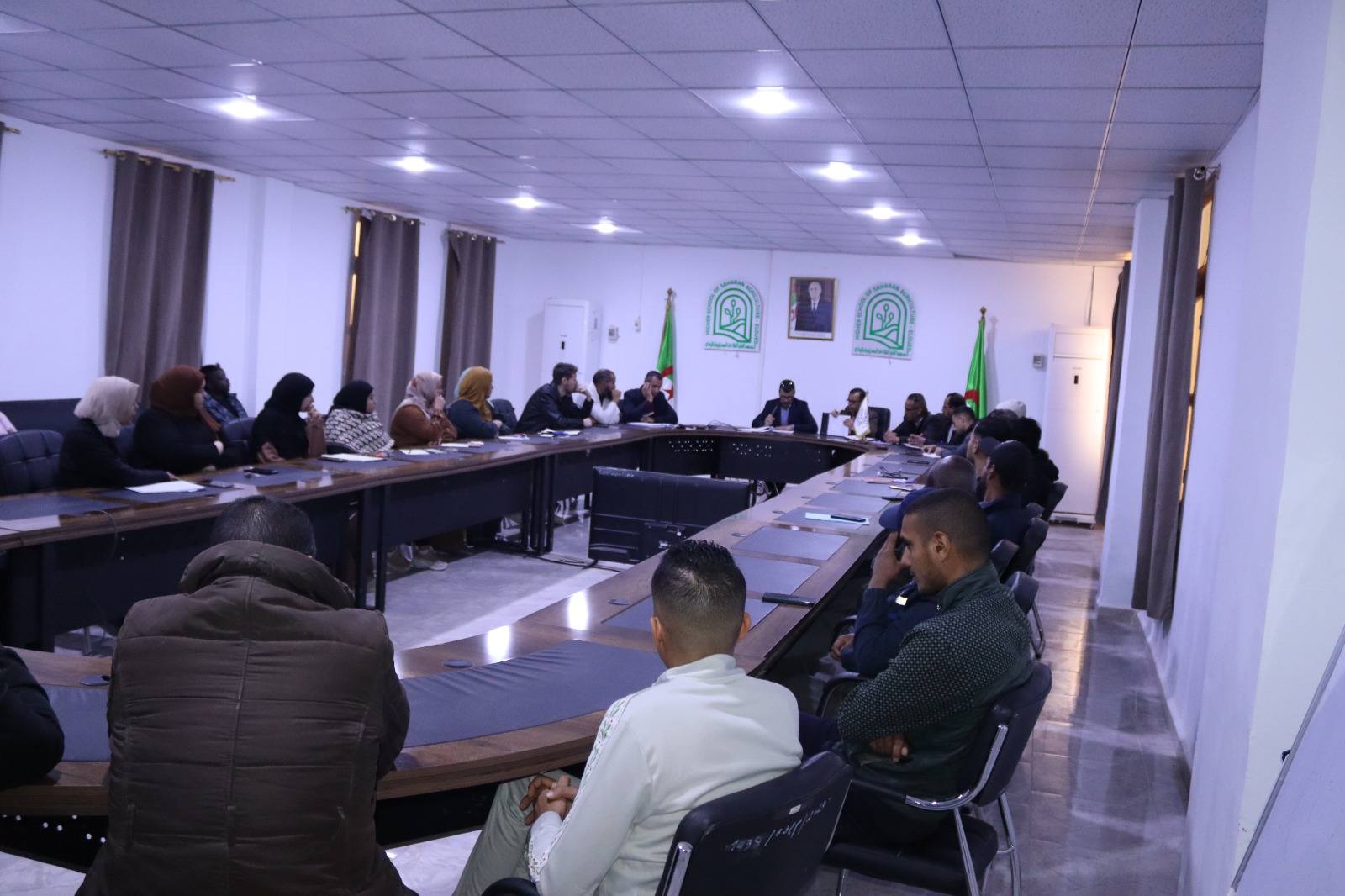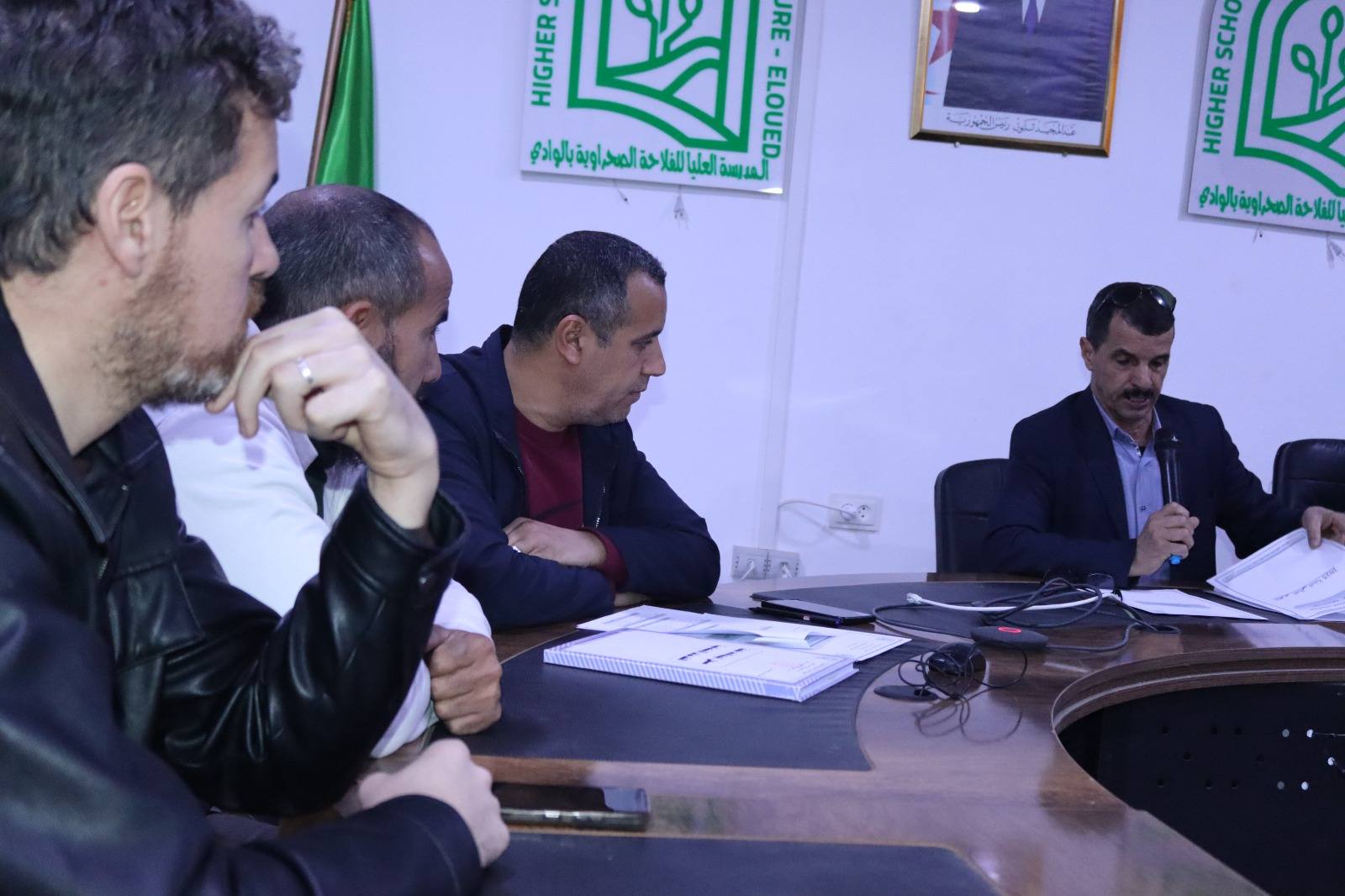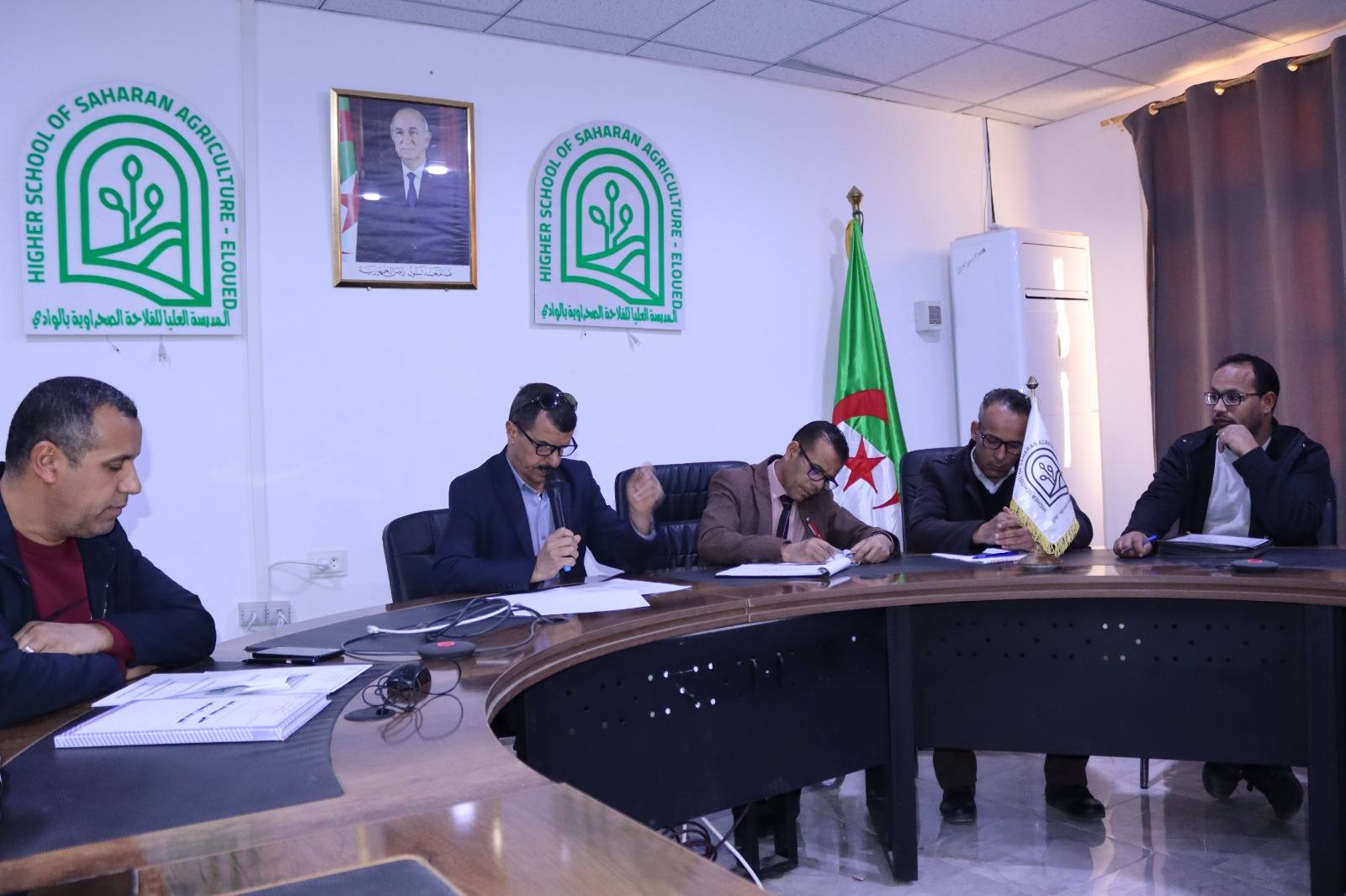 On Thursday, February 19, 2026, the General Assembly of the Social Services Committee of the Higher School of Saharan Agriculture in El Oued was convened, under the chairmanship of the Secretary General of the School, Mr. Mokhtar BEN HALIMA, and the Head of the Committee, Mr. Sofiane SAHRAOUI, in the presence of the institution’s staff, including both administrative personnel and faculty members. During this meeting, the literary and financial reports for the year 2025 were reviewed and approved, and the program of activities for the year 2026 was presented.