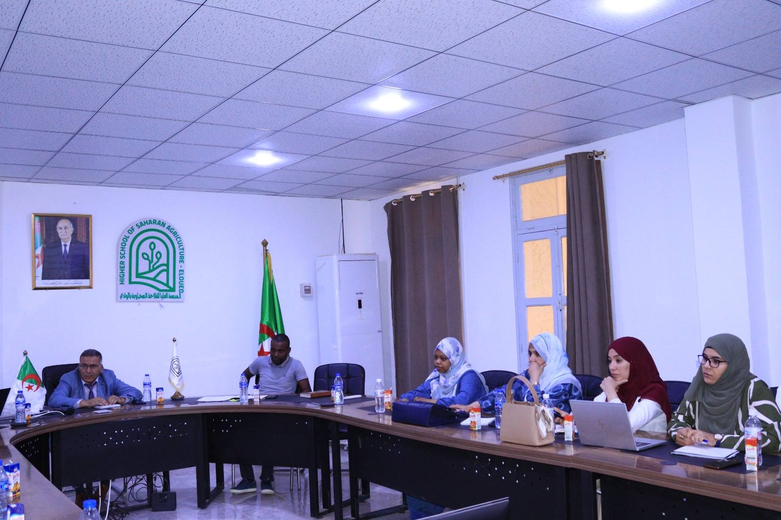 An important meeting was held at the Higher School of Saharan Agriculture in El Oued, bringing together members of the expanded technical committee responsible for selecting scientific and pedagogical equipment for the various specializations within the framework of the investment budget. The meeting was chaired by the Director, Professor Elhabib GUEDDA, and included a detailed presentation of the specifications of the proposed equipment and their relevance to supporting the School's pedagogical activities. Discussions focused on reviewing the technical features of each item and assessing its suitability for the needs of the departments concerned. The meeting concluded with agreement on the next steps to finalize the selection process in accordance with the School's academic priorities.