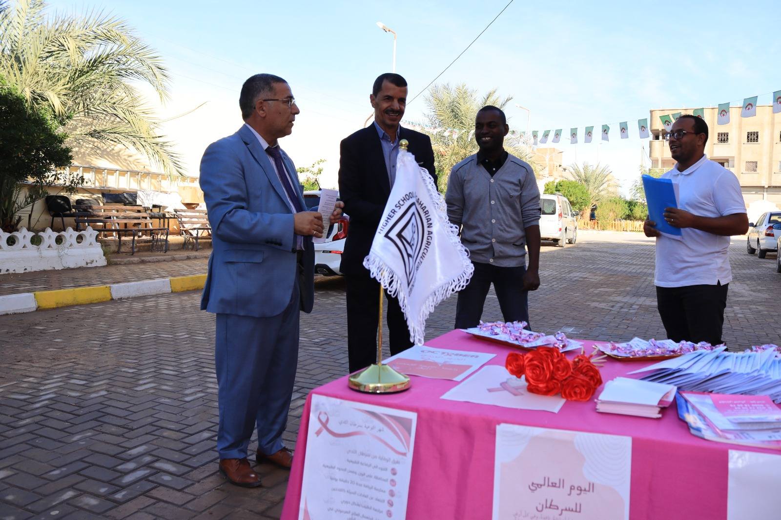 As part of the Pink October awareness campaign, the Higher School of Saharan Agriculture in El Oued organized an awareness event in the presence of the School Director, Professor Elhabib GUEDDA, and the Secretary-General, Mr. Mokhtar BEN HALIMA, together with a specialized female medical team from the provincial health directorate.