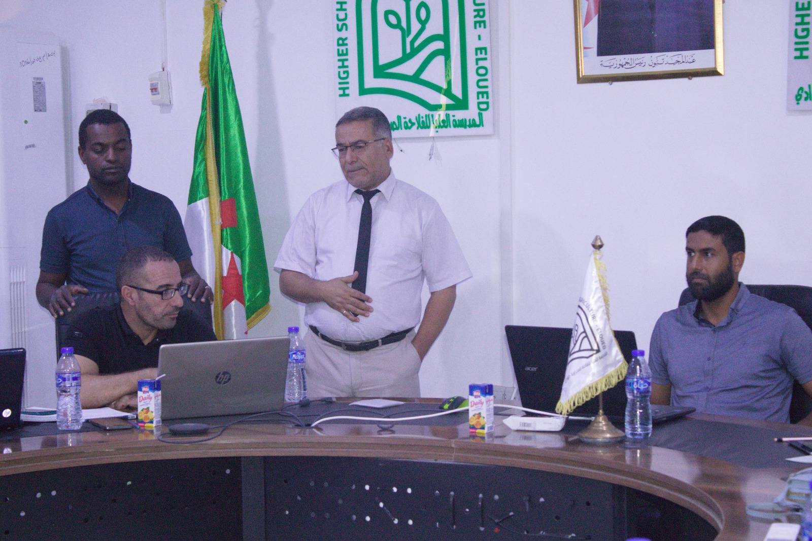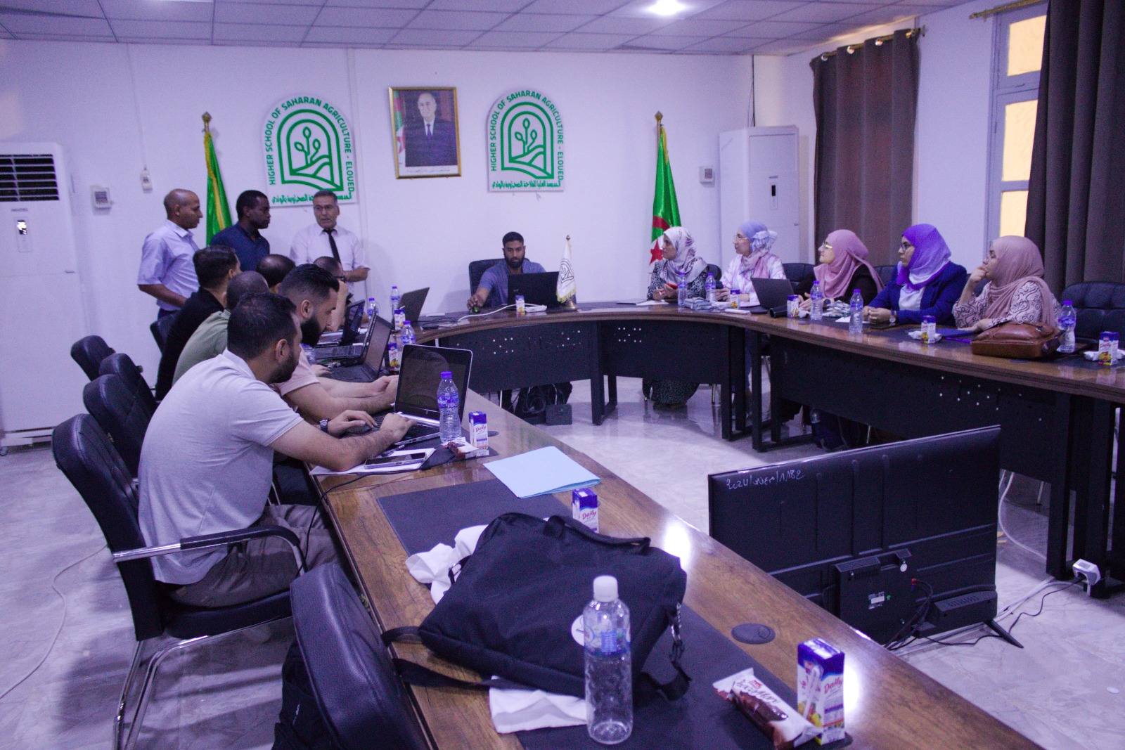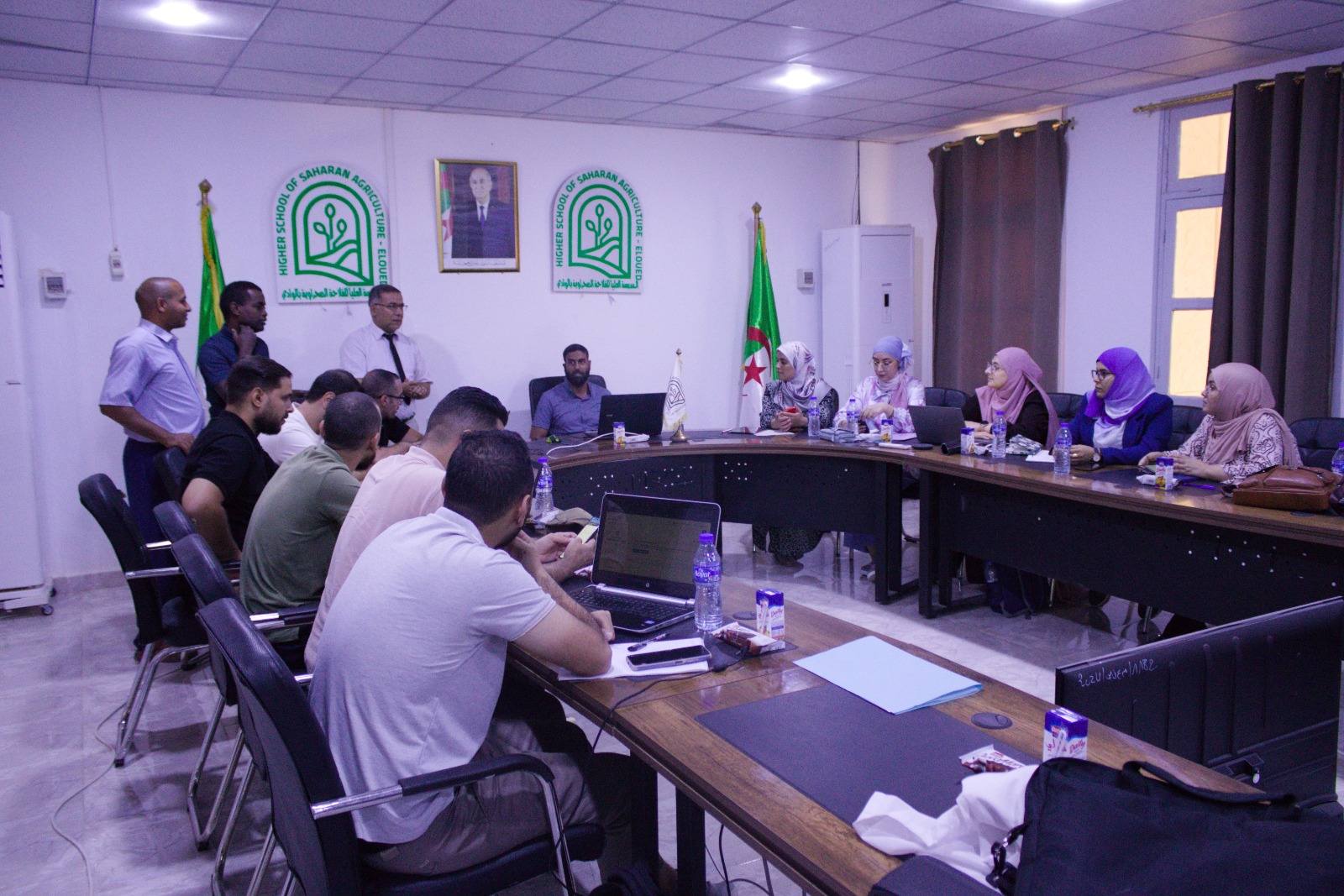 As part of training program, newly appointed faculty members ( Grade B ) at Higher School of Saharan Agriculture in El Oued, Class of 2025, participated in a training day on digital identity, delivered by Dr. Ben Seghir from the University of El Oued . During the training session, the newly appointed academic staff were granted the opportunity to meet with the school's administrative team, headed by the Professor Elhabib GUEDDA , who emphasized the significance of such professional development initiatives in equipping university educators to fulfil their responsibilities with the highest level of competence .